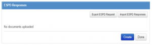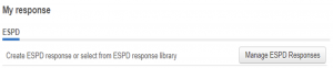 There may be a requirement to complete an ESPD (European Single Procurement Document), if so, click on Manage ESPD Responses where you can create the ESPD from scratch, or import from a previously completed document in addition to exporting the one created for re-use again (remember where you save it to!!). The ESPD relates the requirement to self-declare certain financial, technical and exclusion related selection/suitability criteria. While it can be self-declared, the evidence will be required prior to the decision to award/include on a tender list.