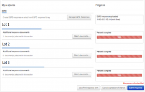 Please note if there are multiple lots, it may appear as 100% complete once you upload against one lot, but if you want to respond to multiple lots, remember to upload against each lot.